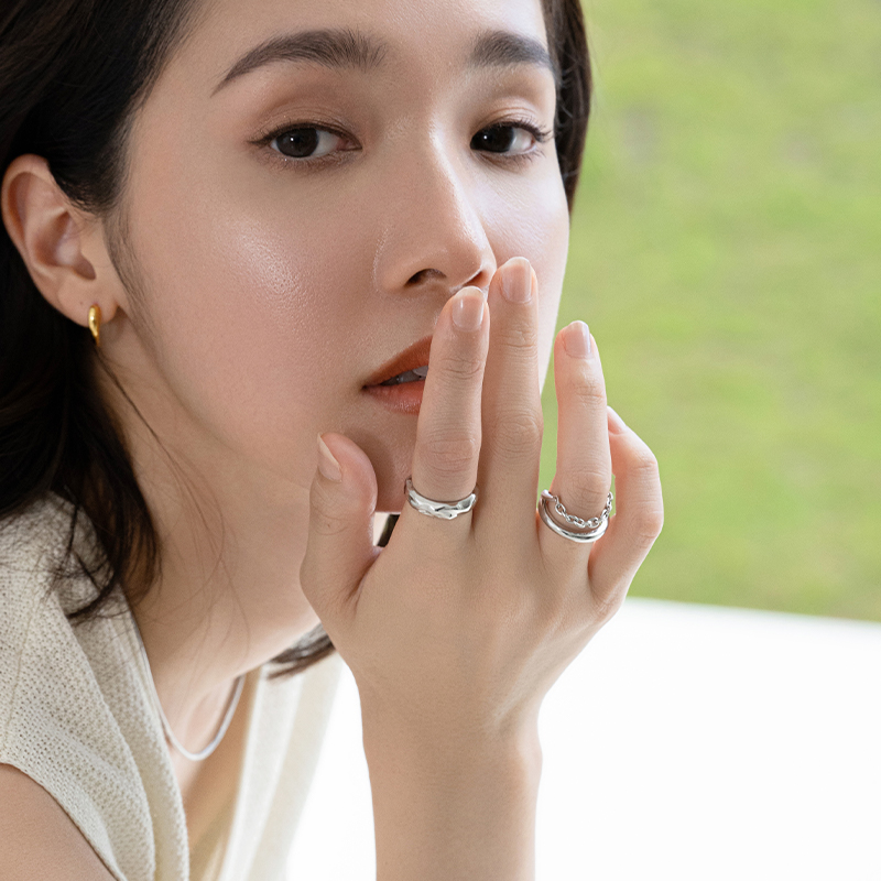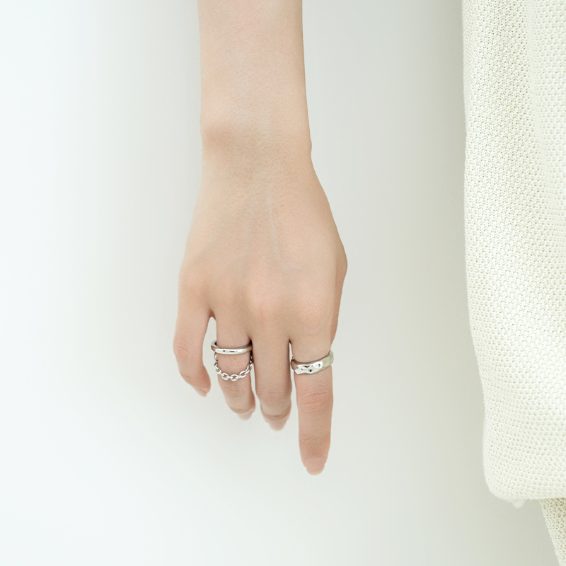 EOLO 银光链环戒指 纯银女银饰小众设计独特EFRG05