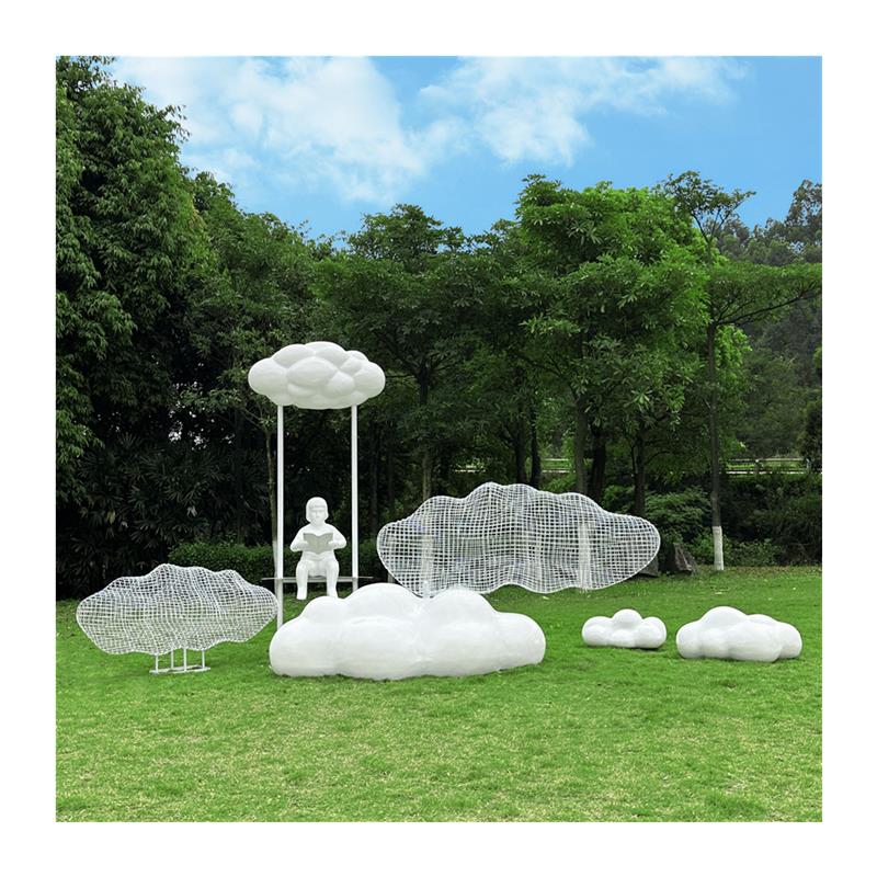 户外美陈玻璃钢不锈钢镂空云朵售楼部草坪处园林景观小品雕塑摆件