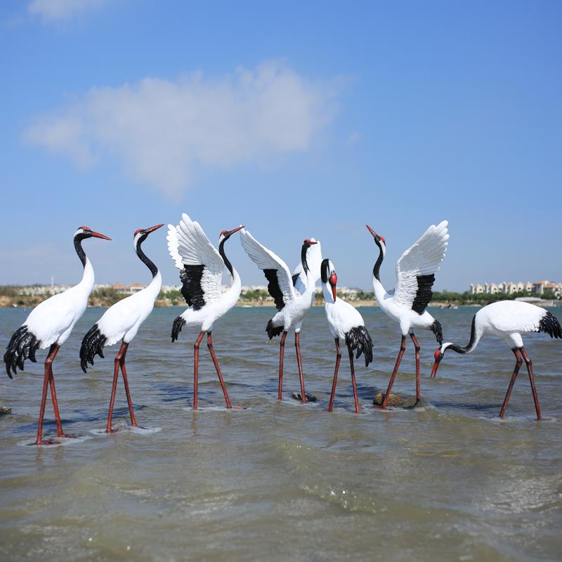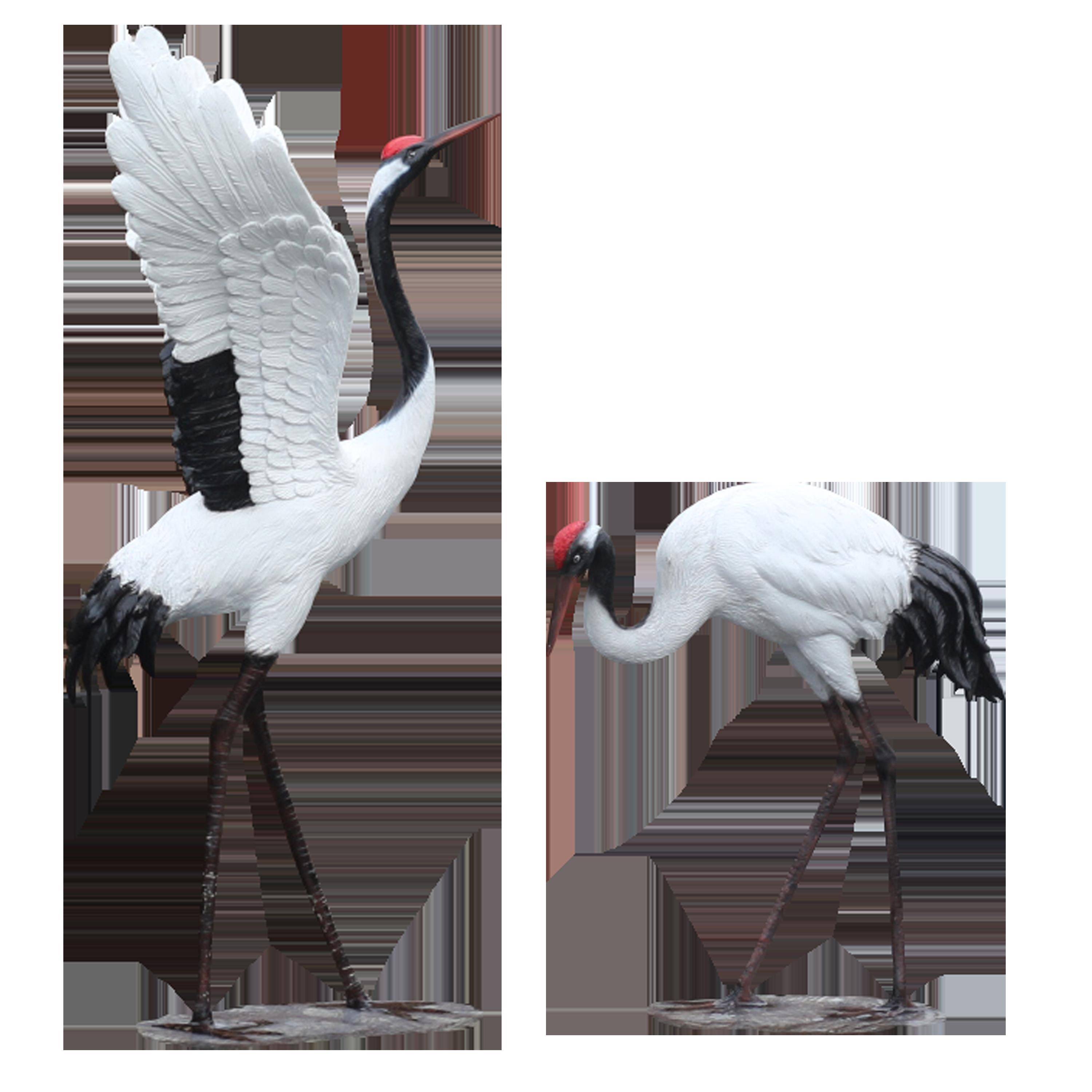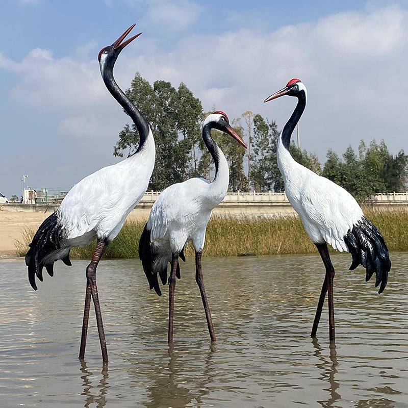 户外彷真仙鹤雕塑水景庭院花园林造景观装饰玻璃纤维小品丹顶鹤摆
