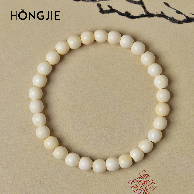 猛犸牙手串女男猛犸三通单珠吊坠手镯配饰散珠子雕刻猛犸象牙手串