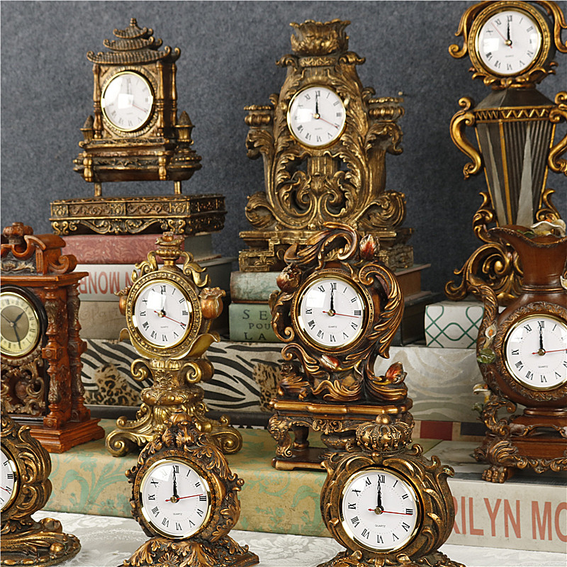 欧式复古洛可可宫廷风树脂浮雕座钟家居玄关桌面创意装饰钟表摆件