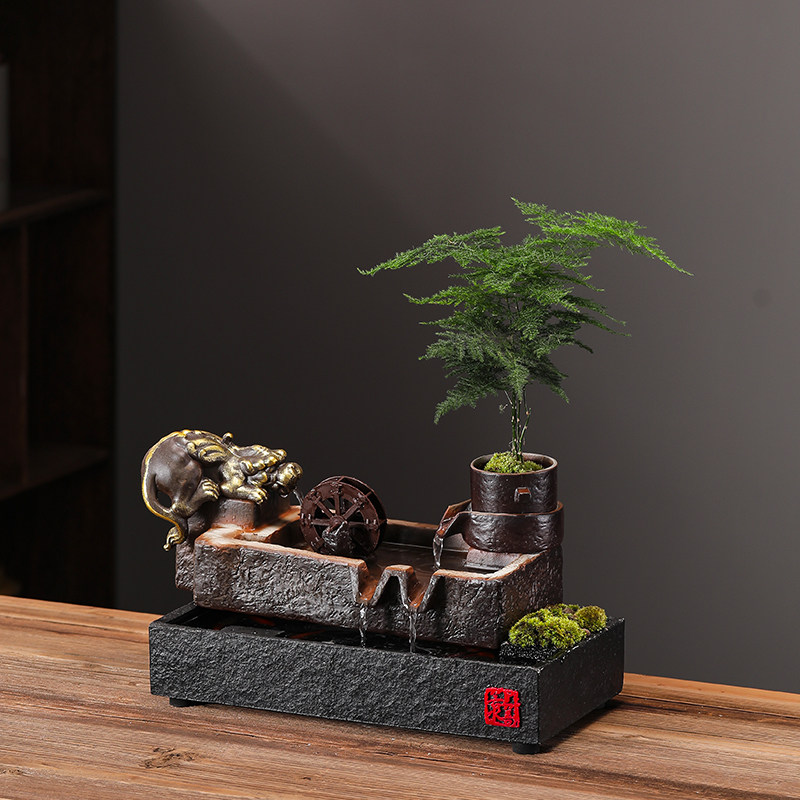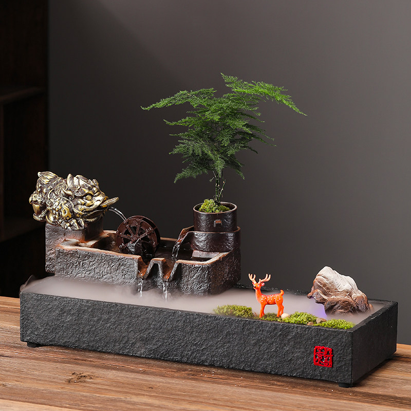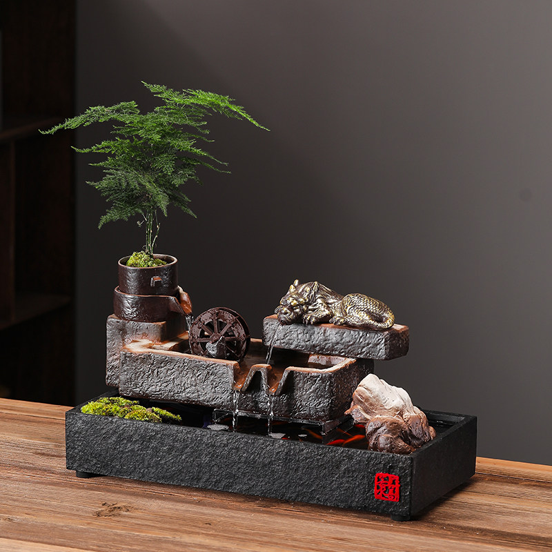 创意流水生财摆件桌面鱼缸循环水装饰客厅玄关办公室摆设开业礼品