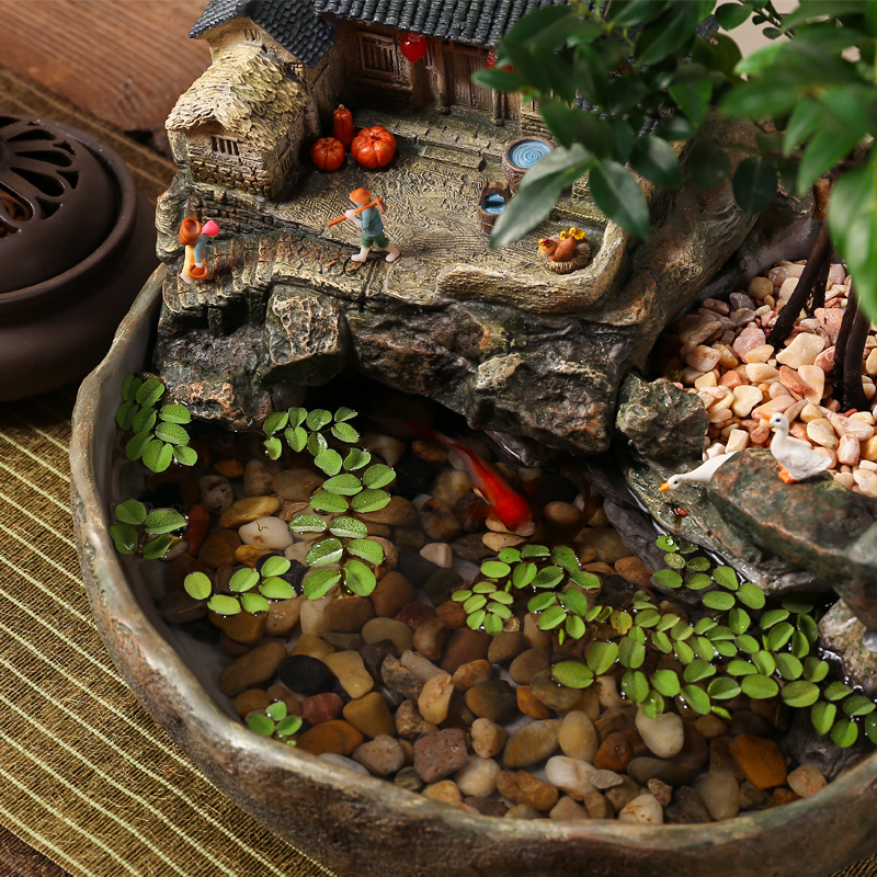 桌面微景观小鱼缸流水摆件循环水客厅办公室装饰开业乔迁新居礼品