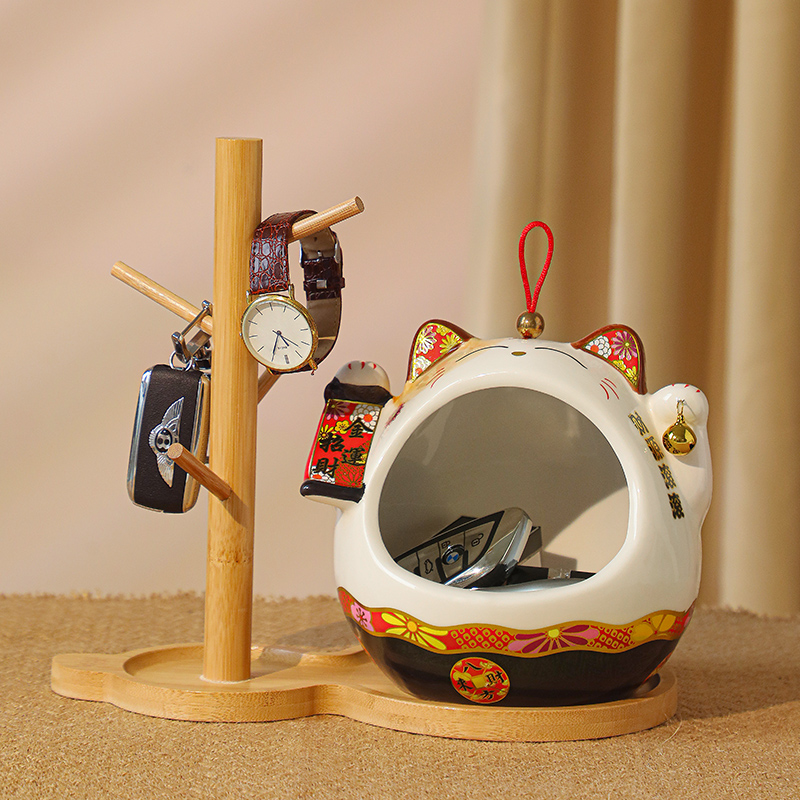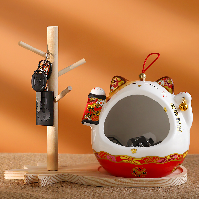 招财猫钥匙收纳摆件入户玄关进门鞋柜前台家居装饰品生日乔迁礼物