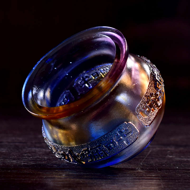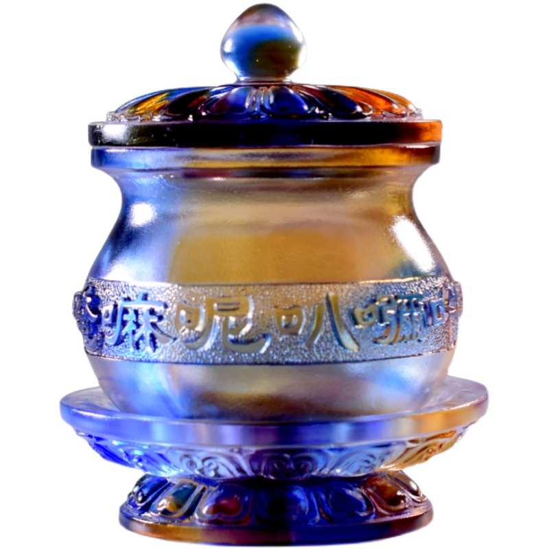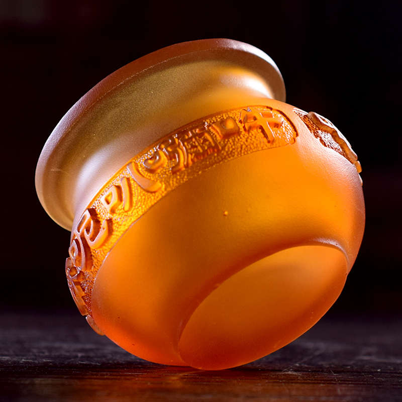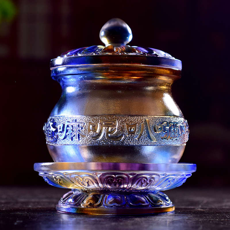 供奉佛前圣水杯六字真言家用观音净水杯古法琉璃供杯室内复古包邮