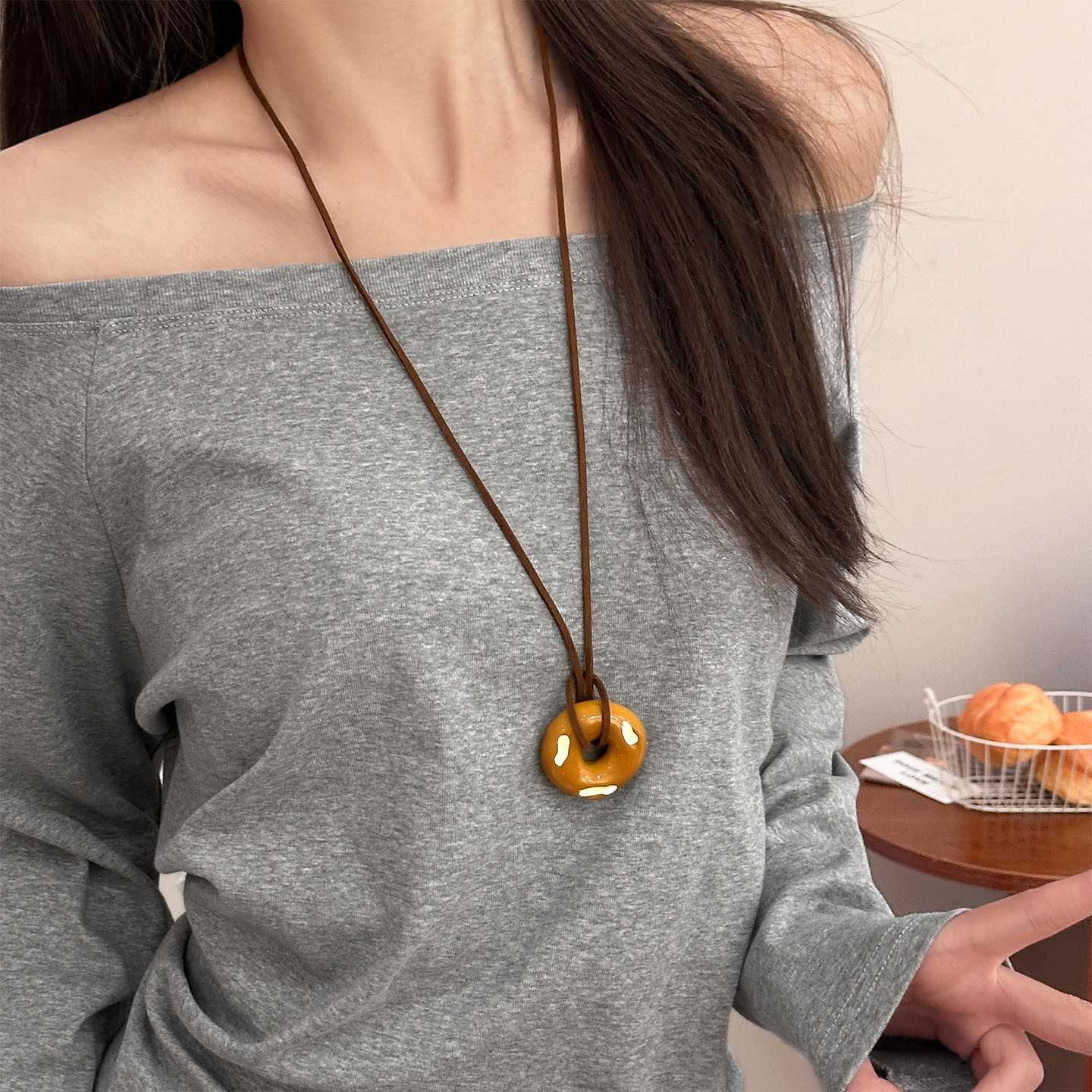 可爱碱水面包贝果吊坠项链秋冬百搭长款毛衣链2025新款挂脖卫衣链