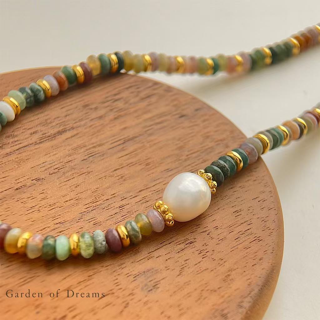 Hemo『油画风』丨国潮原创设计珍珠项链民族风文艺百搭玛瑙锁骨链