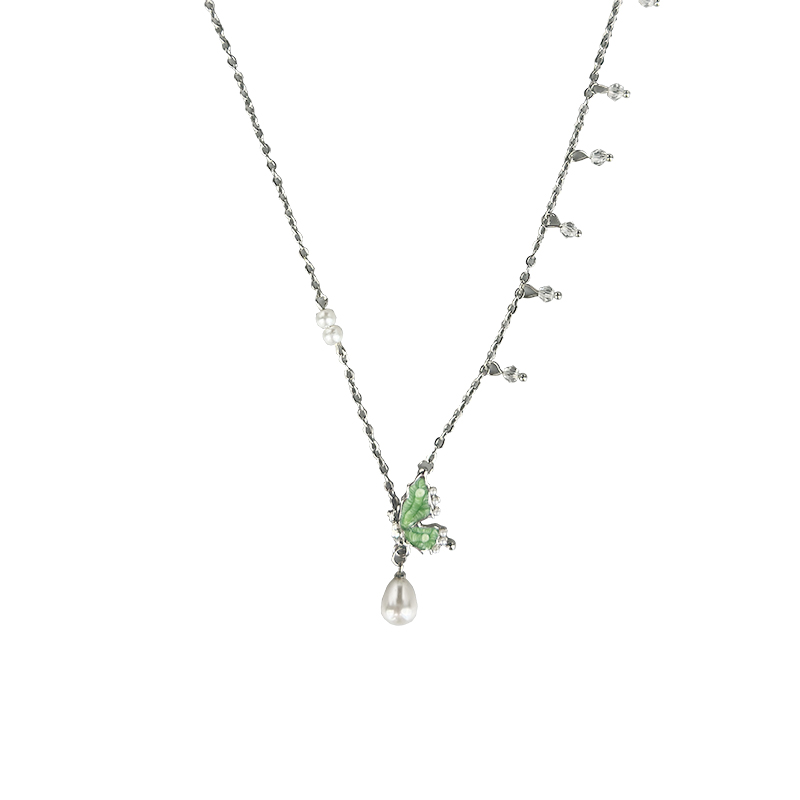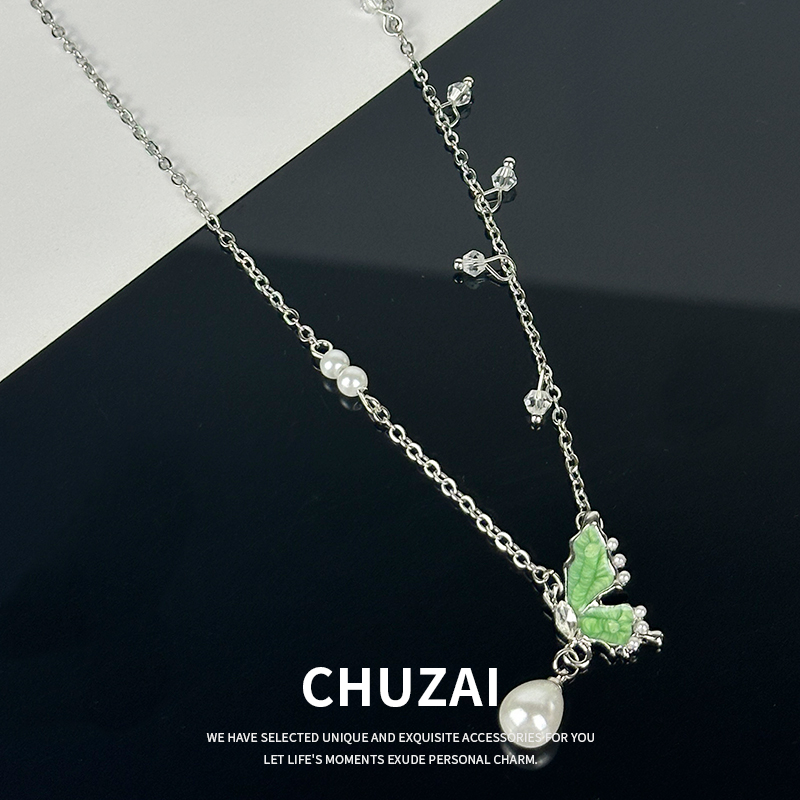 CHUZAI绿色蝴蝶珍珠项链女甜酷辣妹轻奢小众流苏设计感饰品锁骨链