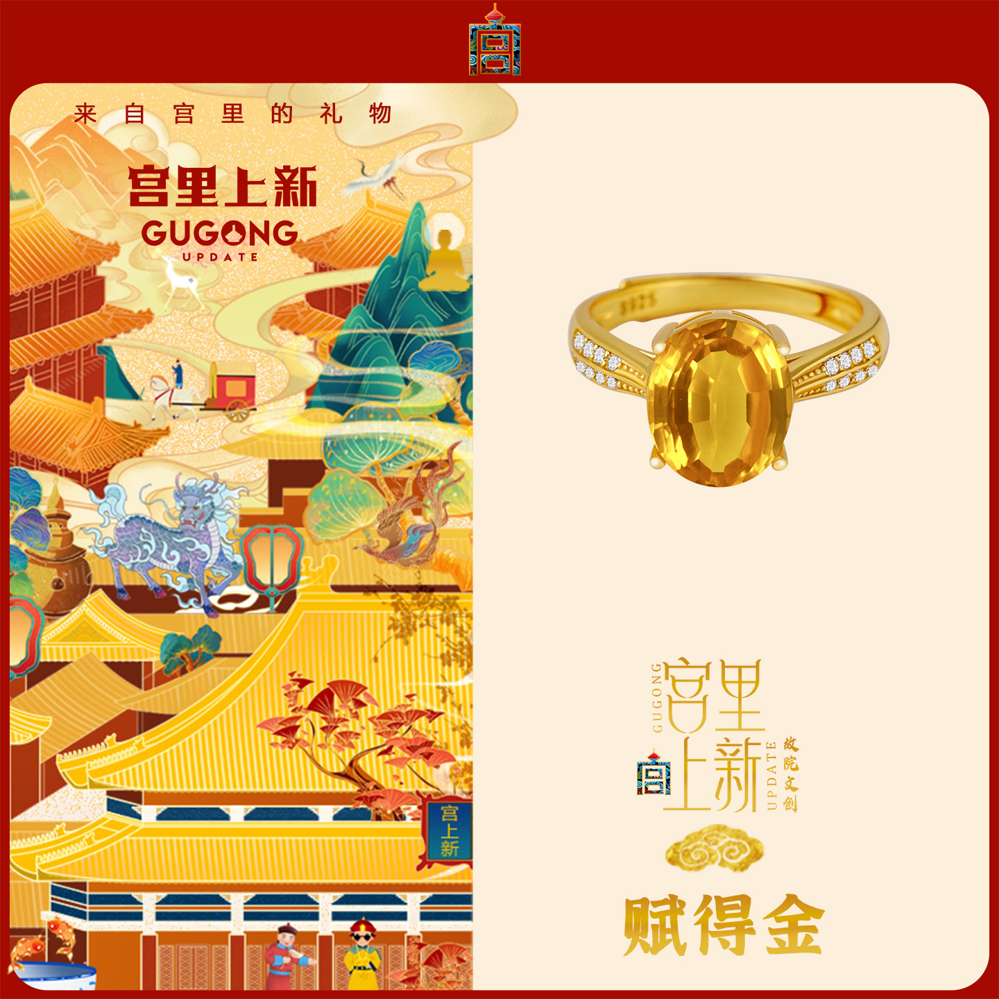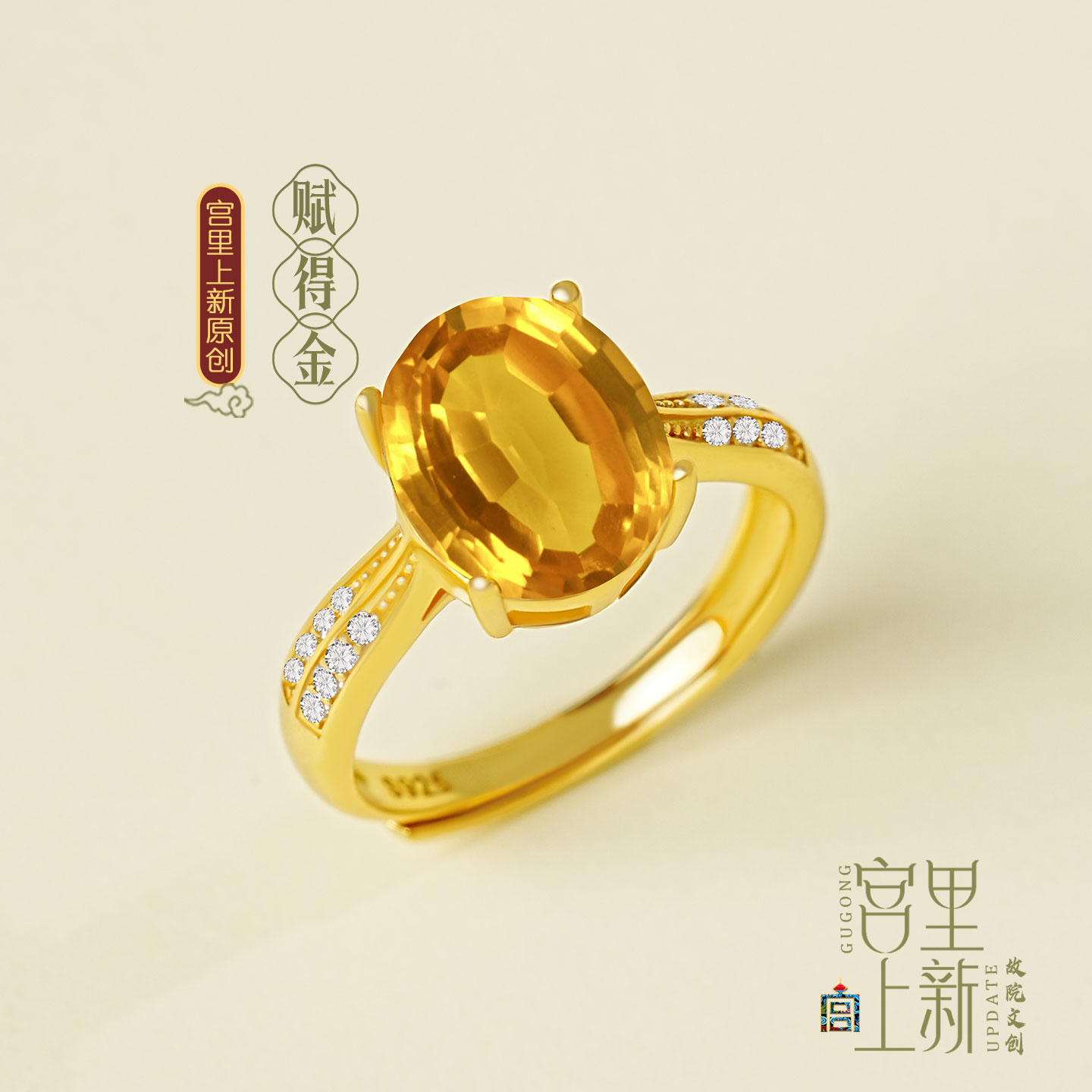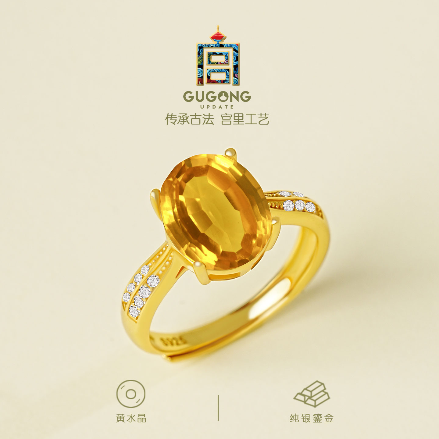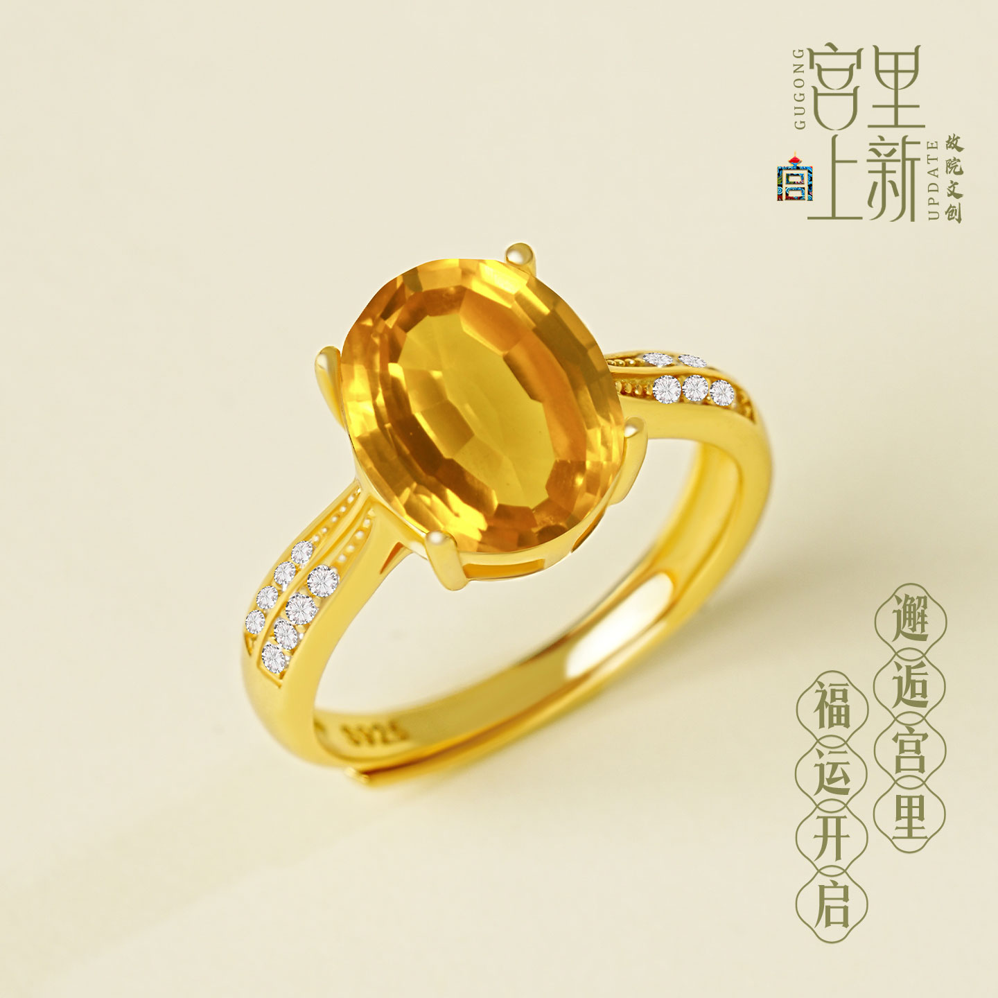宫里上新黄水晶戒指女天然宝石戒指纯银食指戒指环招财生日礼物