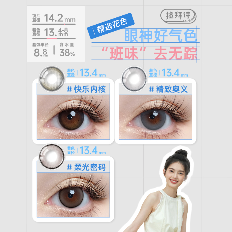 双11开抢】拉拜诗伞语美瞳近视隐形眼镜月抛2片*2大小直径囤货装