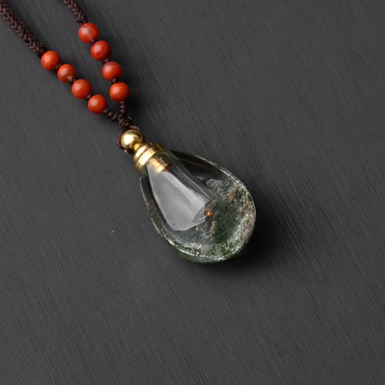 天然粉晶 绿幽灵 金发晶香薰瓶项坠可加精油或香水 生日礼物礼品