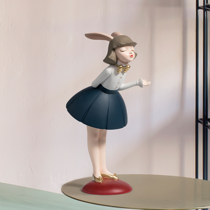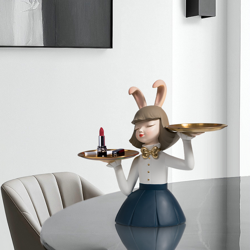 创意兔宝女孩收纳摆件欢迎回家少女心家居客厅电视柜创意软装饰品
