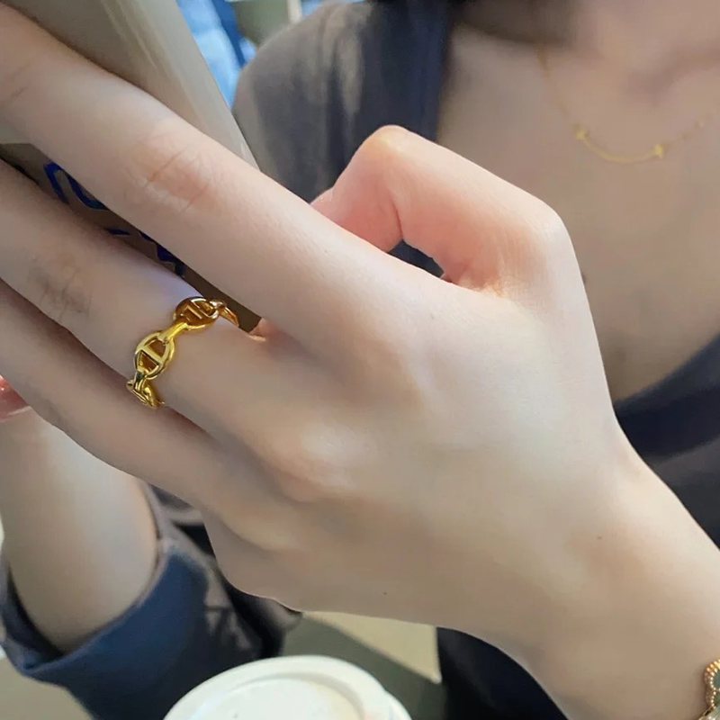 韩国设计感猪鼻子钛钢戒指女时尚个性素圈不掉色食指戒轻奢指环潮