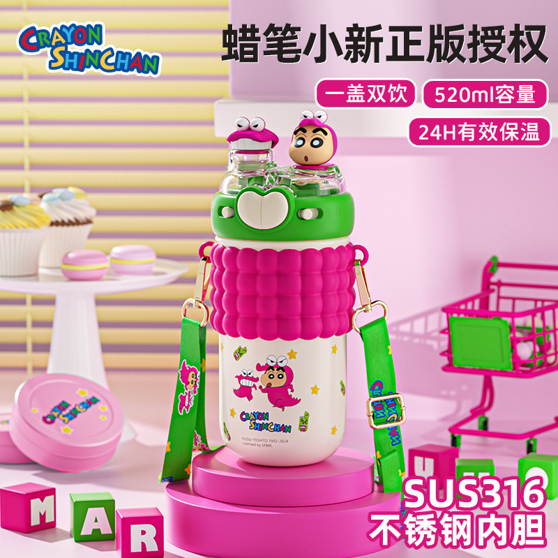 日本品质正版联名IP蜡笔小新保温杯儿童2025新款双饮水杯子带吸管