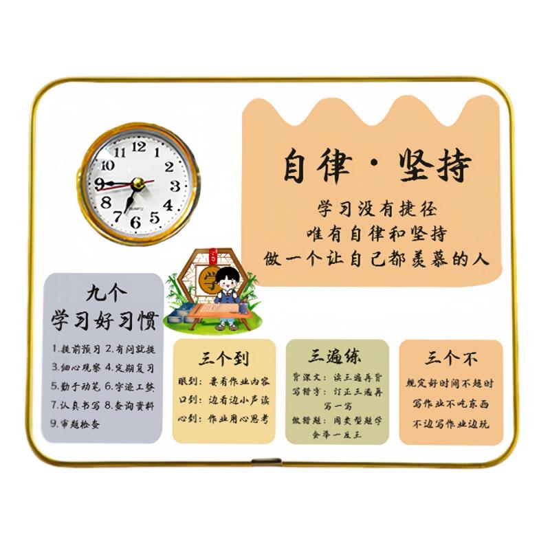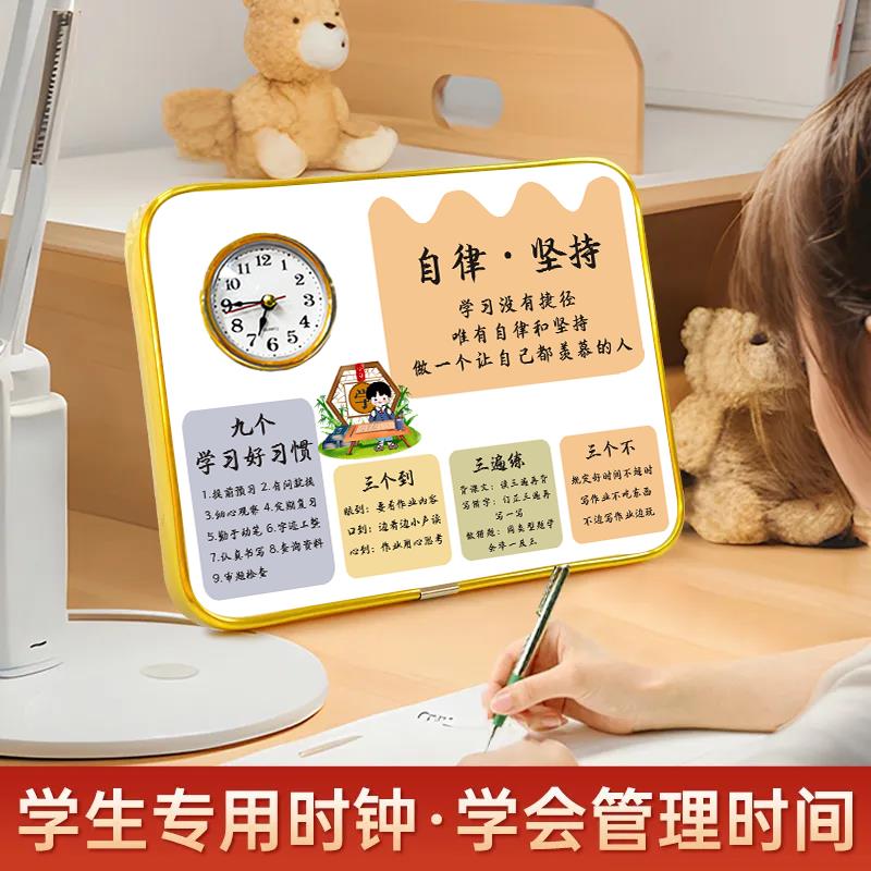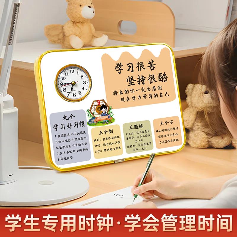 学习励志时钟摆件小学生激励立牌桌面钟表摆台孩子新学期开学礼物