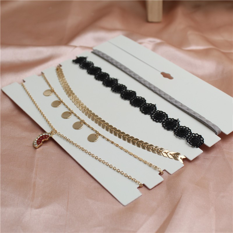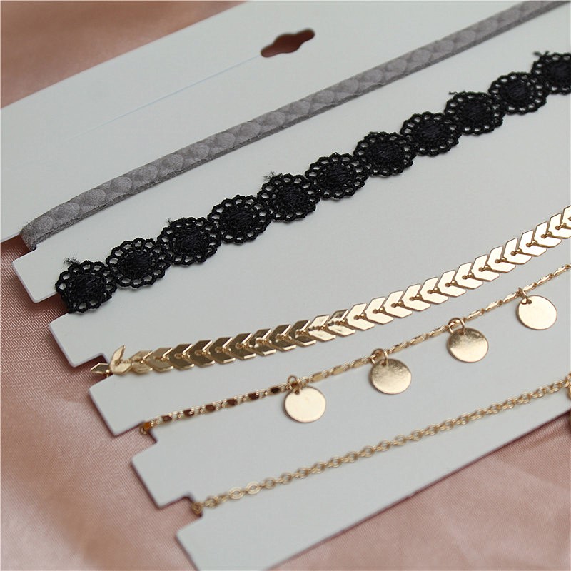 日韩风格新款套装组合choker金属镀金花边缎带简约时尚卡脖项链女