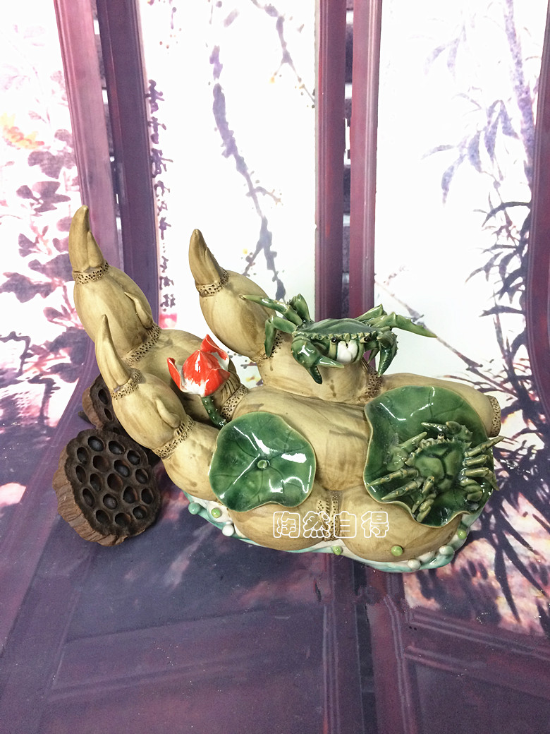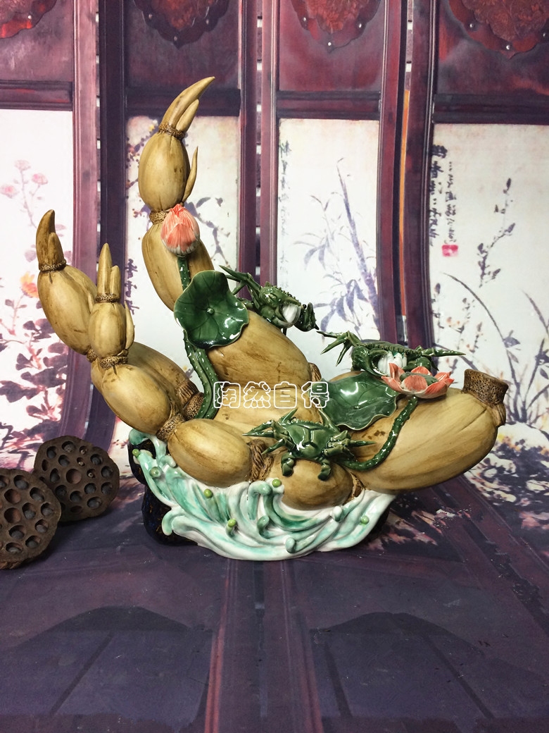 家居饰品 陶瓷工艺品摆设精品摆件步步高升莲藕石湾公仔现代客厅