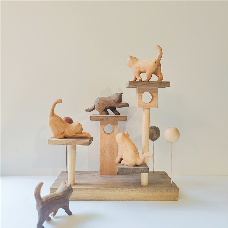 冰冷森林木雕手作猫咪微观猫架朦胧猫幻想乐园氛围装饰摆件桌面