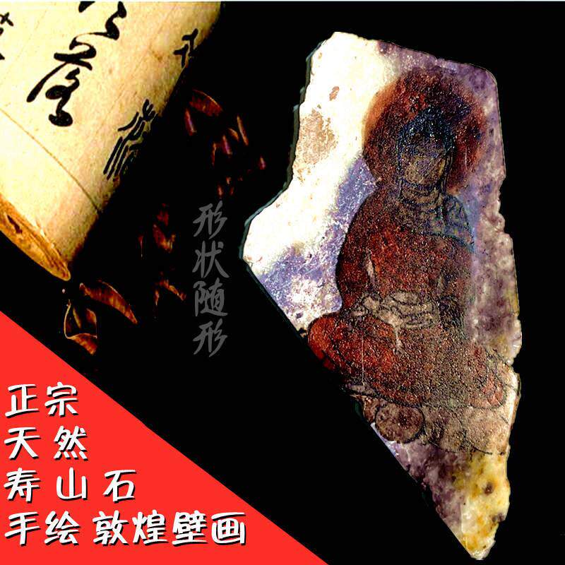寿山石敦煌壁画天然原石手绘摆件佛像画像玄关客厅书房茶室摆件