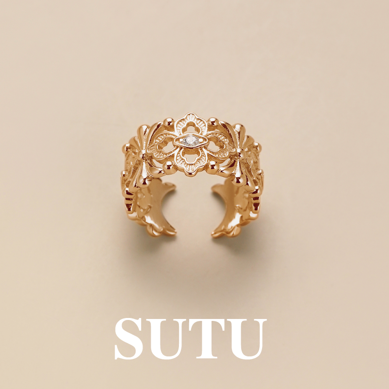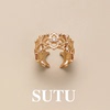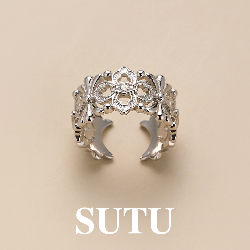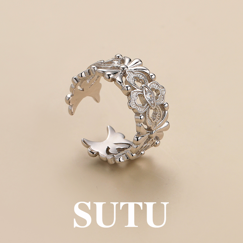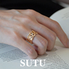 素图sutu戒指镂空雕花925银戒轻奢高级开口指环尾戒小众设计饰品