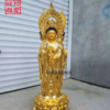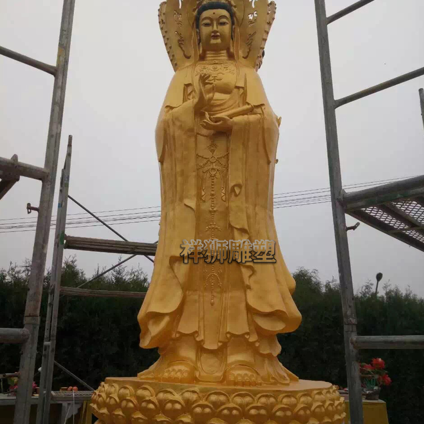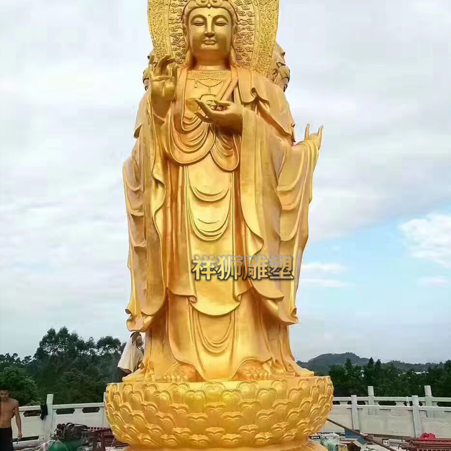 祥狮雕塑黄铜彩绘水月观音佛像寺庙供奉摆件精工厂家批发来图定制