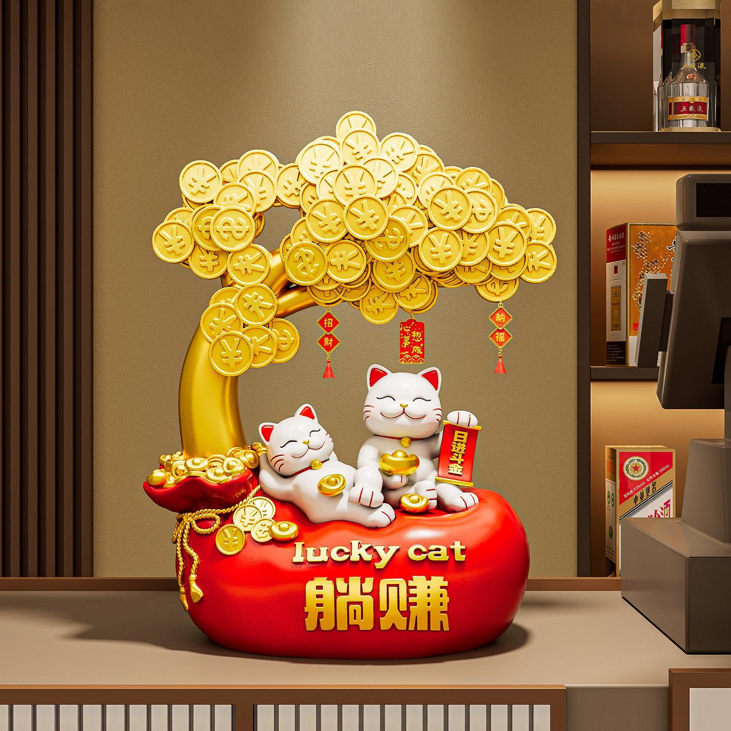 发财树招财猫2025新款摆件客厅高档店铺前台装饰乔迁新居开 业礼