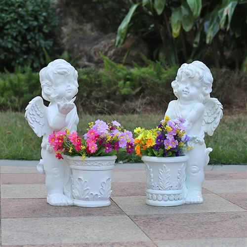 户外园林景观天使人物花缸摆件别墅门店造景装饰玻璃钢丘比特雕塑