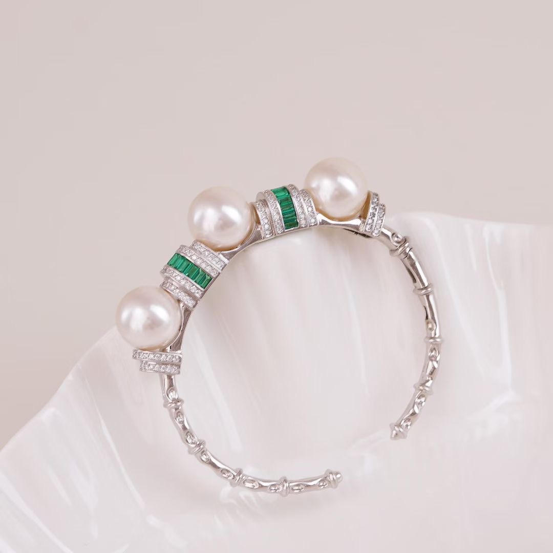 s925纯银银饰手镯配件珍珠饰品diy手工制作开口手环空托配10-11