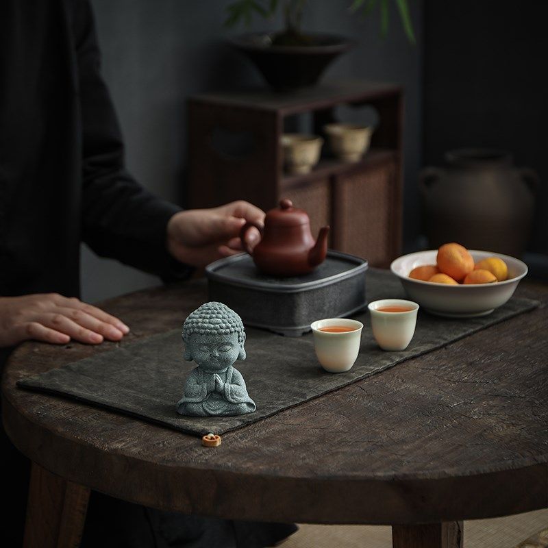 辉道 青砂石茶宠小如来摆件中式国风茶盘摆放假山鱼缸造景精品