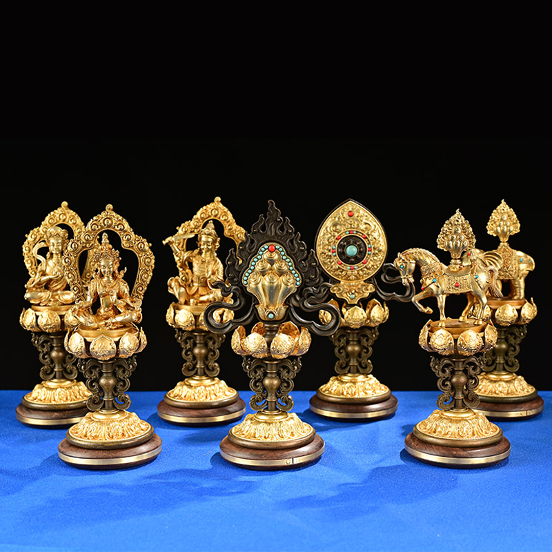 七政宝摆件纯铜慧宝精工藏传密宗供奉摆件轮王七珍宝佛堂用品