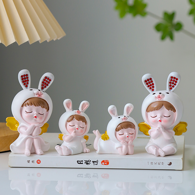 可爱小兔子模型兔年卡通招财兔摆件客厅女生房间床头车内装饰品