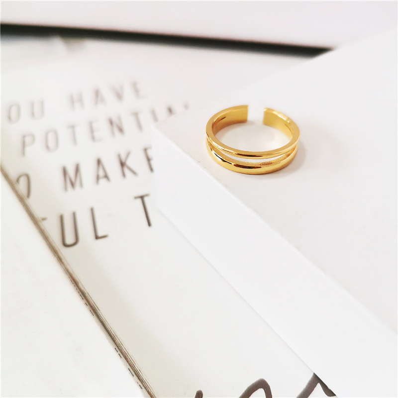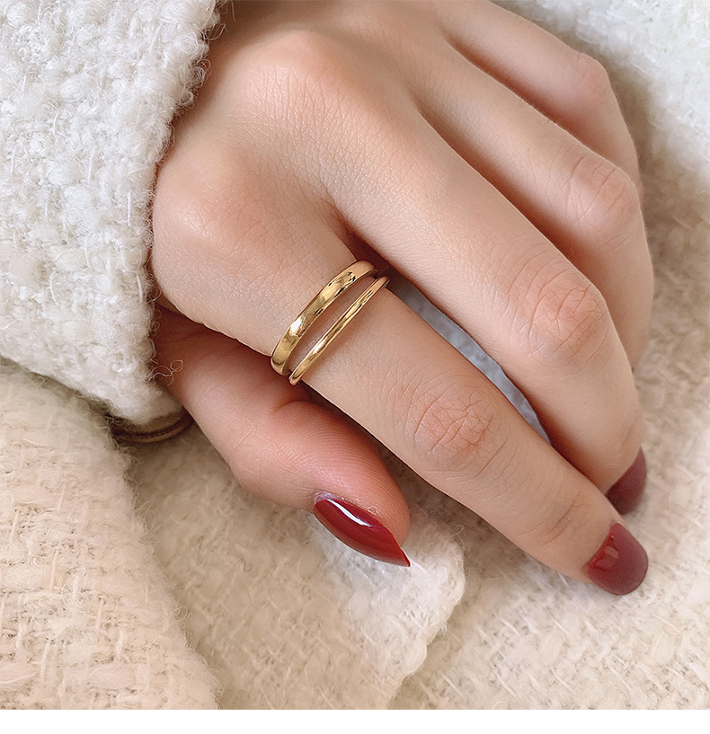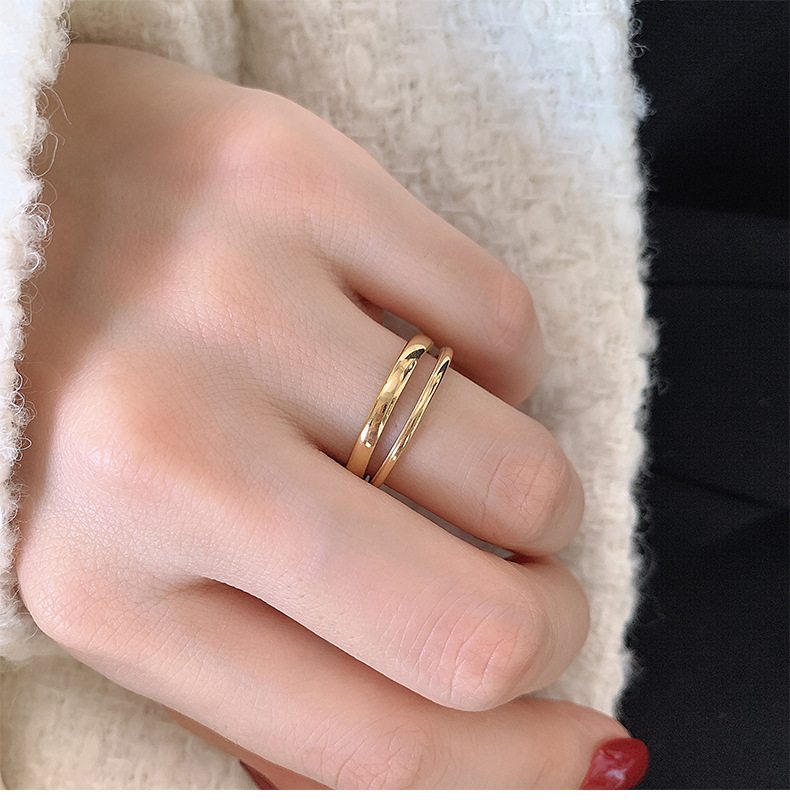 大码戒指女胖MM双层复古时尚开口简约胖人粗手大号食指指环ins潮