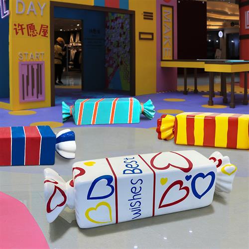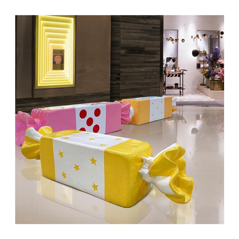 户外卡通休闲糖果座椅玻璃钢雕塑商业街游乐场潮店美陈装饰大摆件
