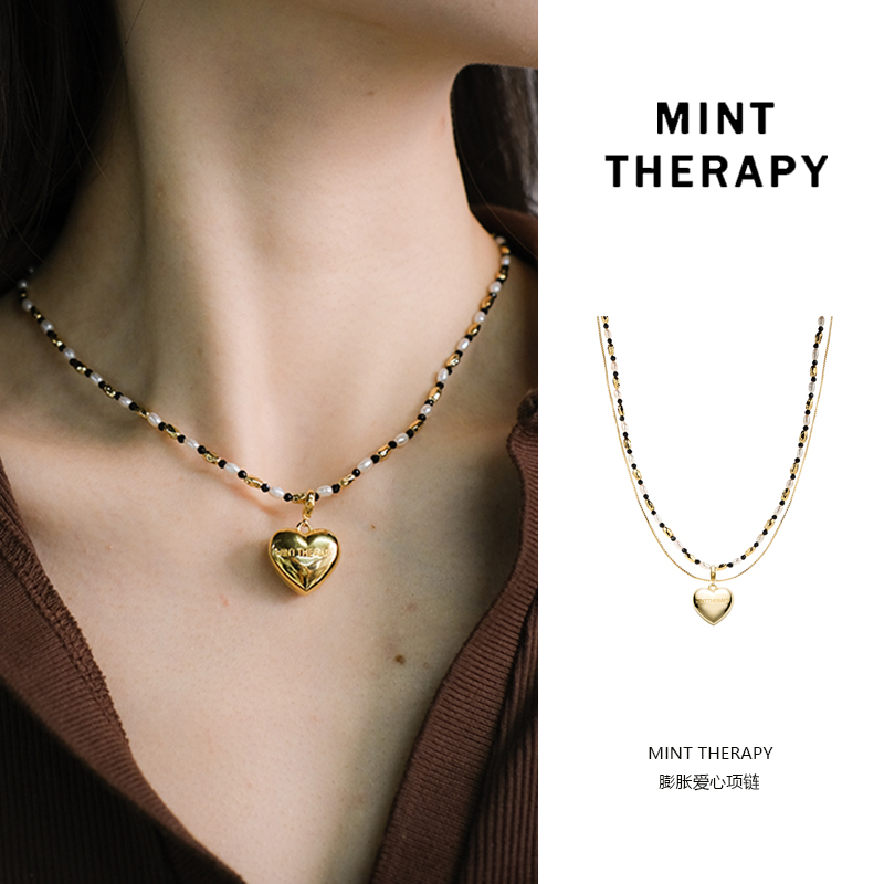 周雨彤夏诗文同款MINT THERAPY膨胀大爱心项链小众原创锁骨链礼物
