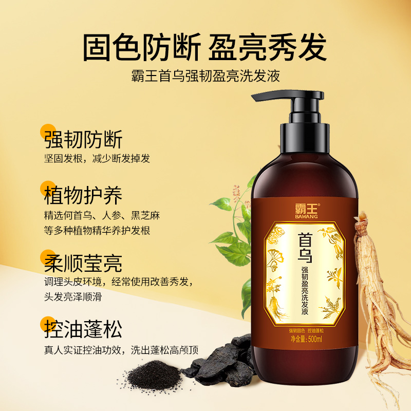 霸王何首乌控油洗发水护理蓬松黑芝麻固发洗发露植物人参洗头水