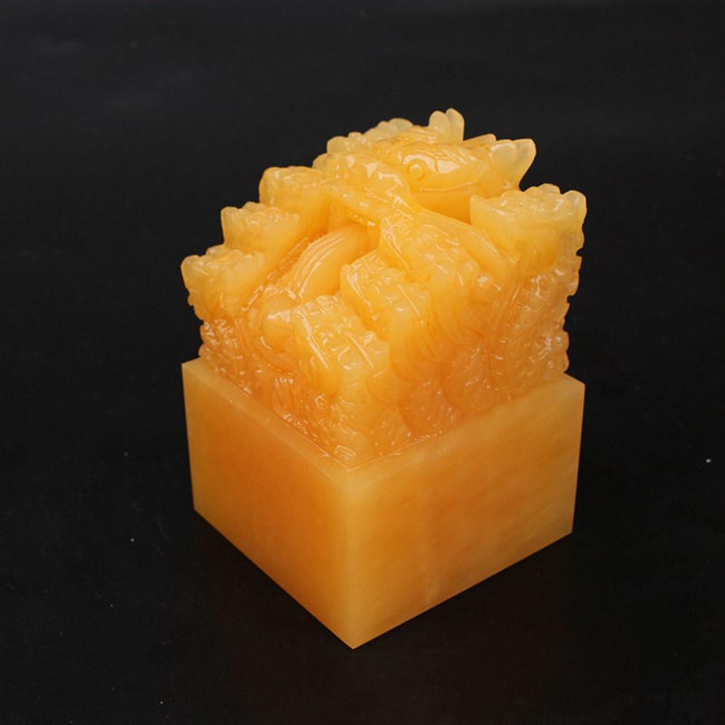 6-12cm天然米黄玉玉石九龙玉玺 传国J皇帝玉玺大印 手工篆刻印章