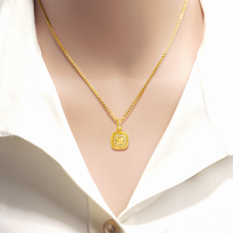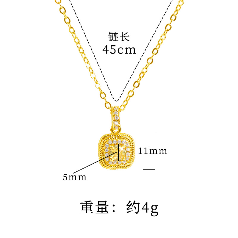 小方糖黄钻戒指项链小红书同款锁骨链镀18k真金首饰品女仿真金色