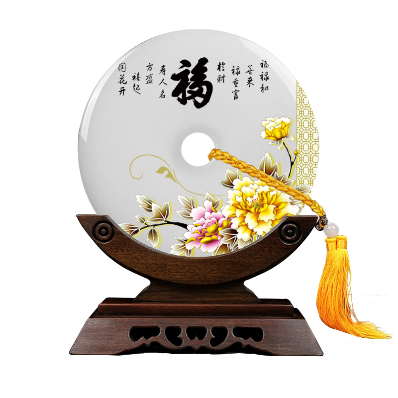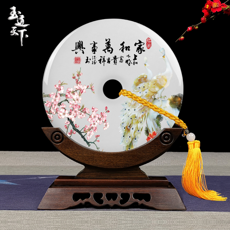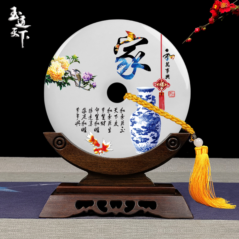 玉石平安扣摆件客厅玄关电视旁边酒柜装饰搬新家礼物乔迁新居礼品