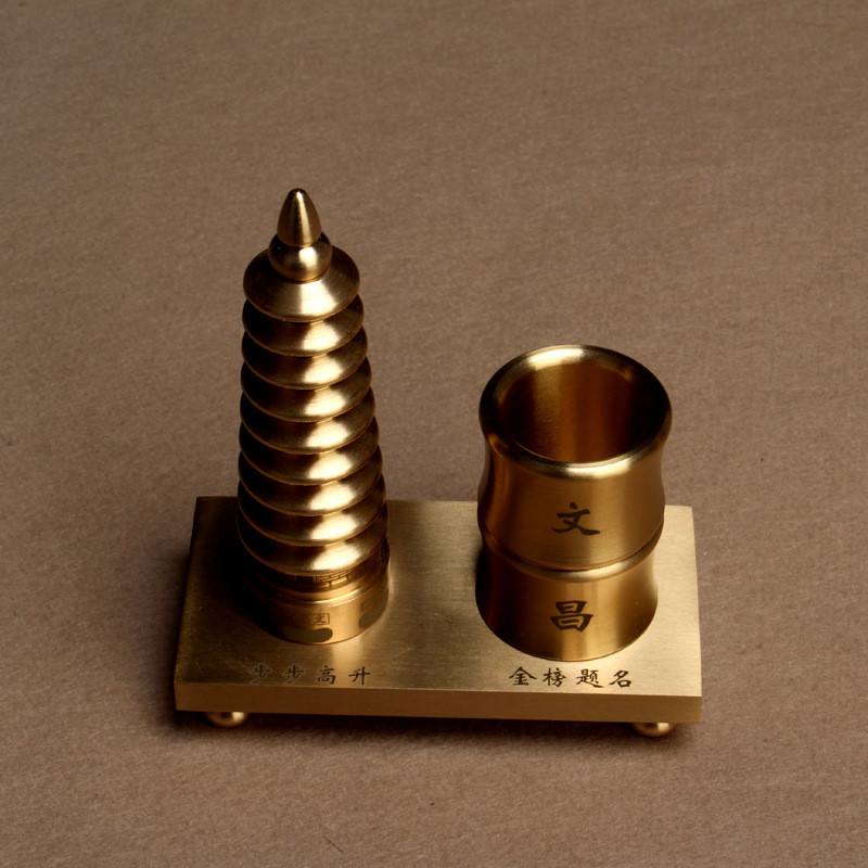厂家批发纯黄铜文昌纯铜家居吉祥摆件办公室摆件文昌塔笔筒笔筒