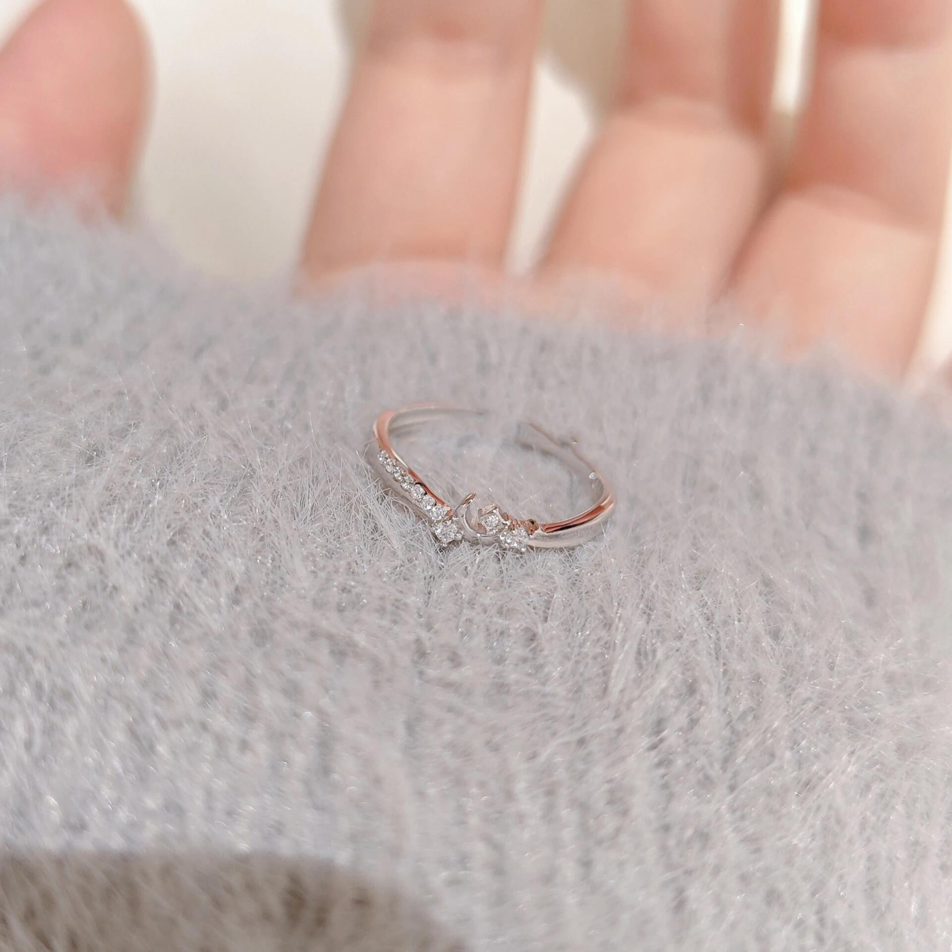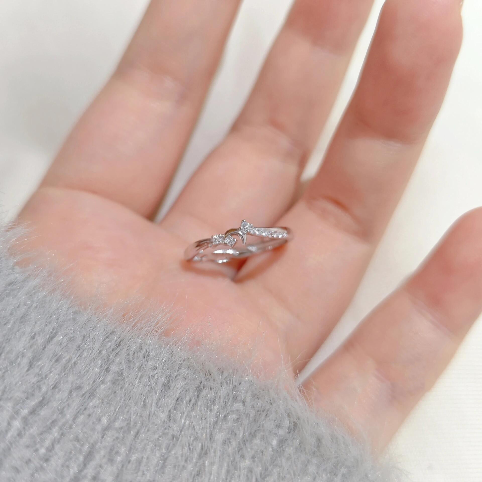 满钻银色星月素圈戒指女款独特小众设计食指戒轻奢高级感精致指环