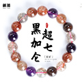 珍藏天然超七紫发晶手链男女金草莓晶黑加仑三轮骨干顺发水晶手串