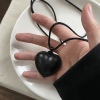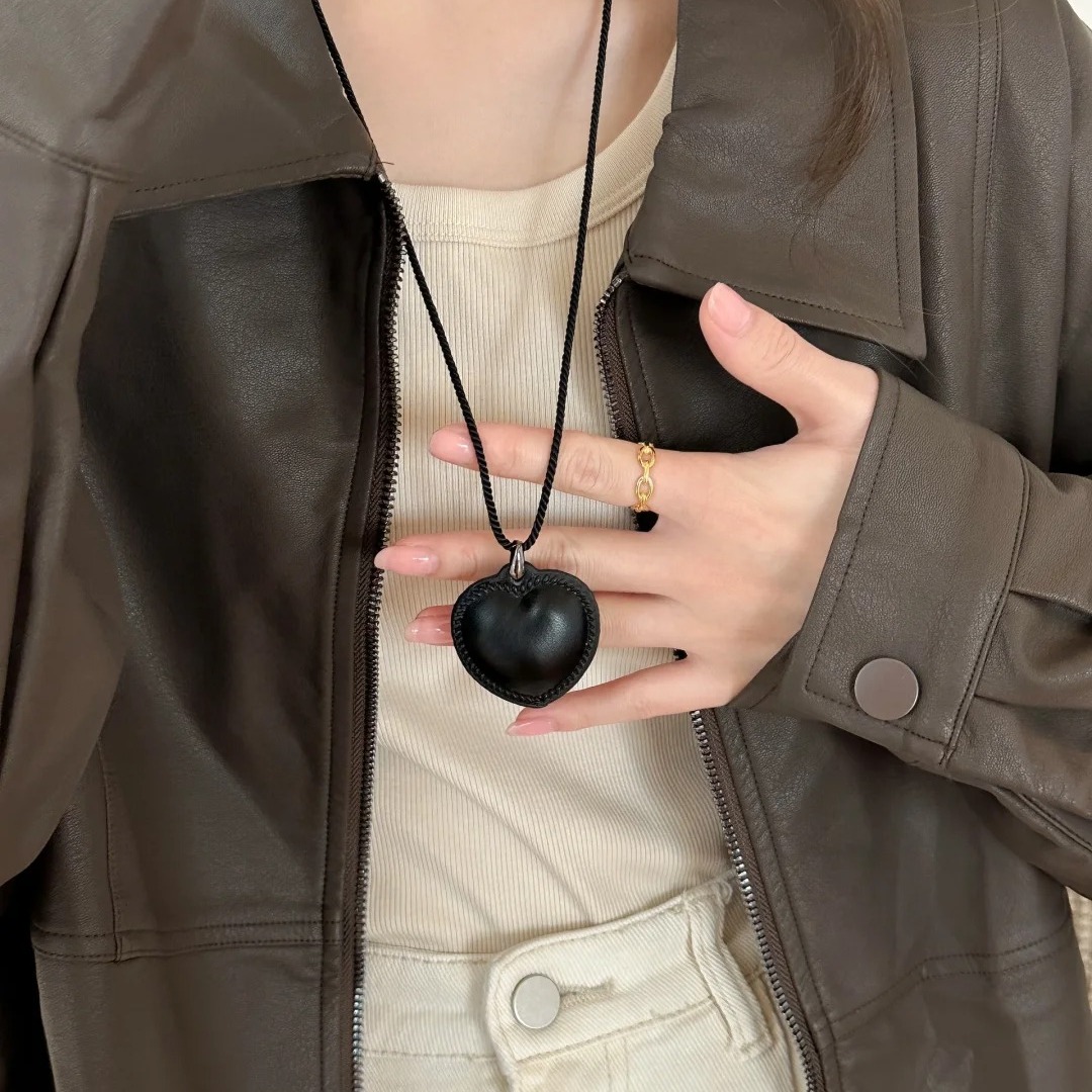 韩国网红博主fever同款复古黑色皮革麻花边立体爱心时髦辣妹项链