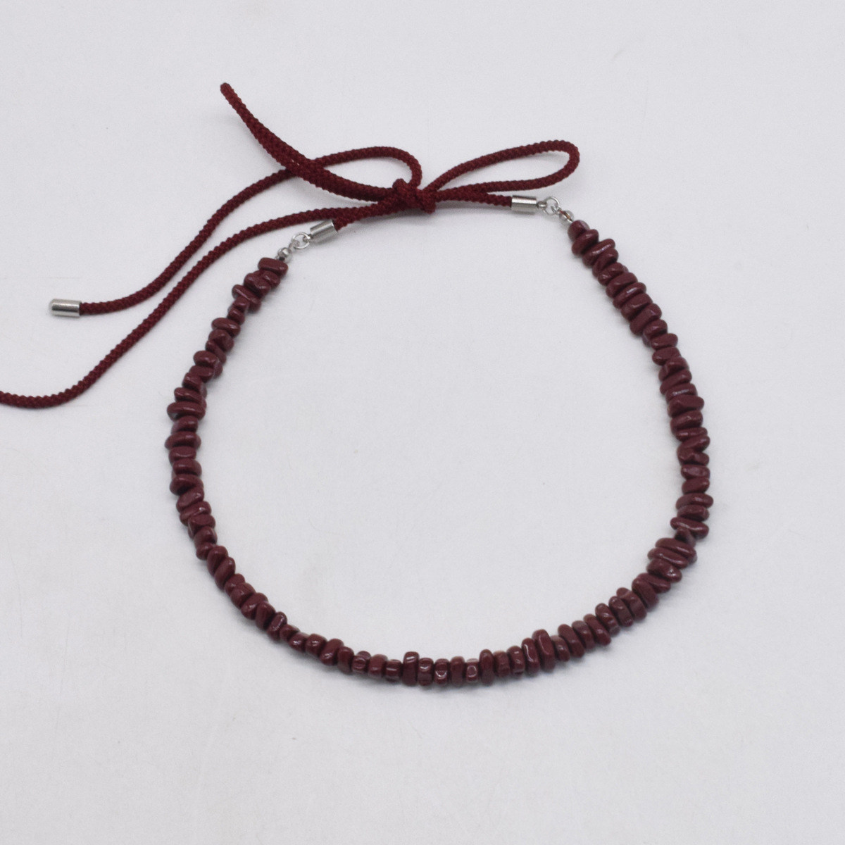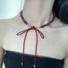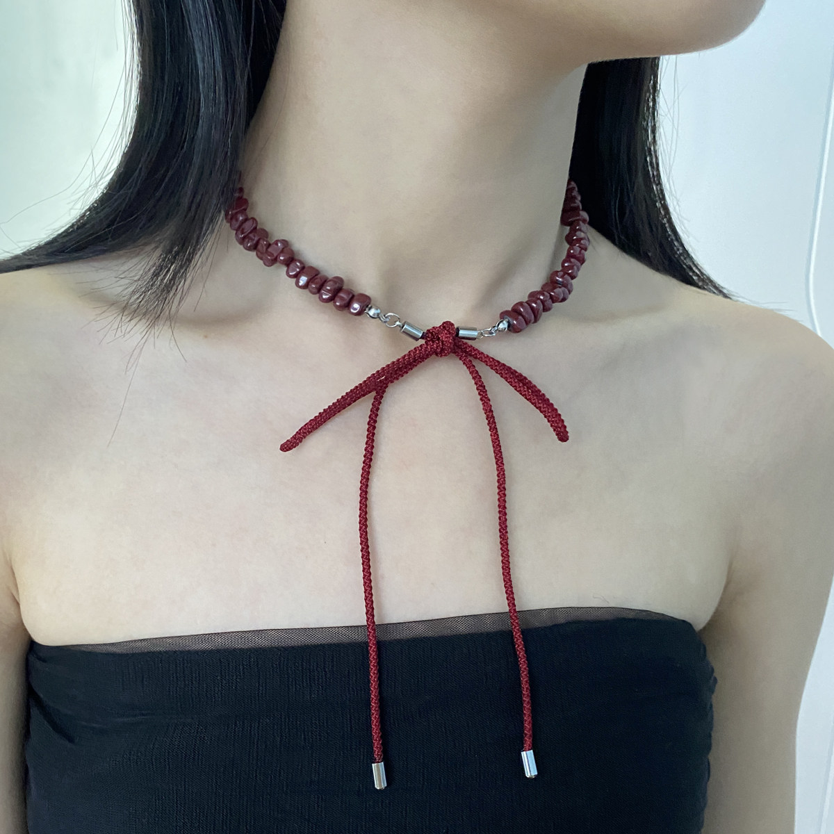 秋冬显白酒红系绳蝴蝶结流苏异型碎石choker项链女锁骨链高级配饰