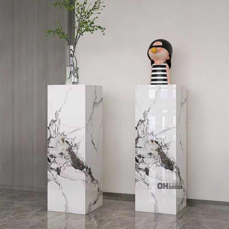 客厅轻奢摆件迁乔新居落地装饰玄关展示台大理石方柱墩子岩板底座