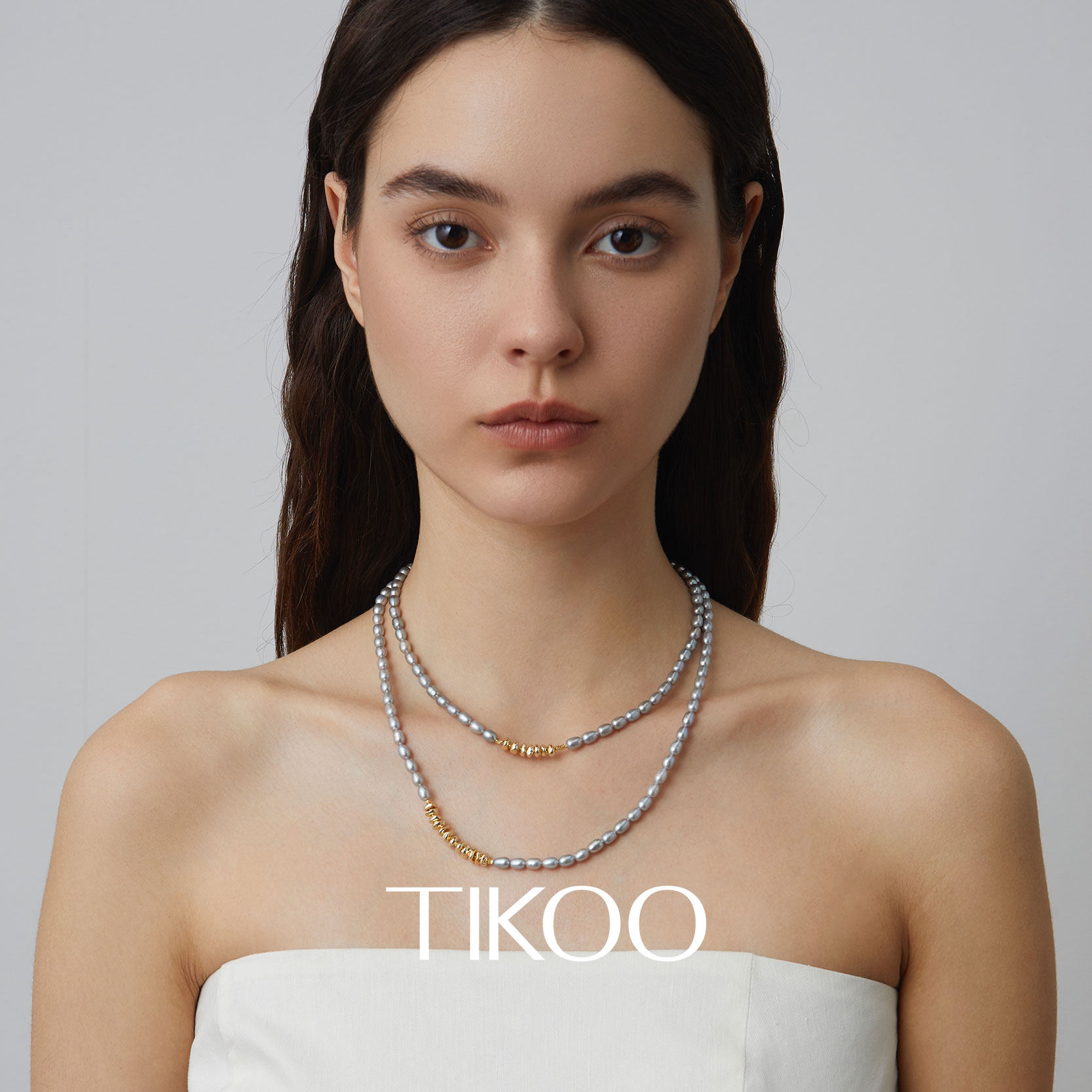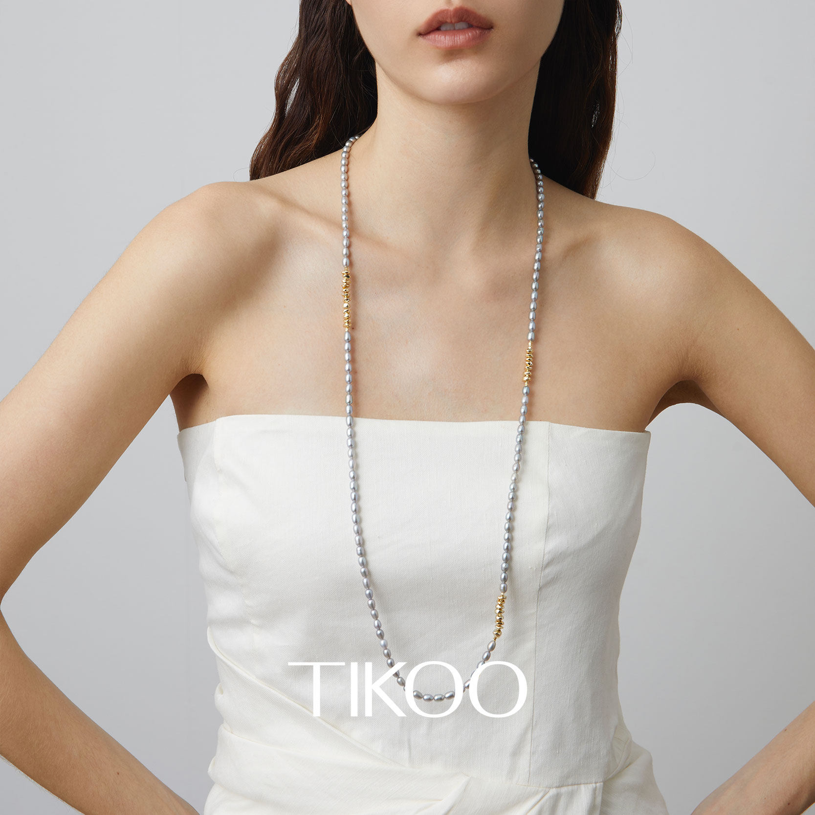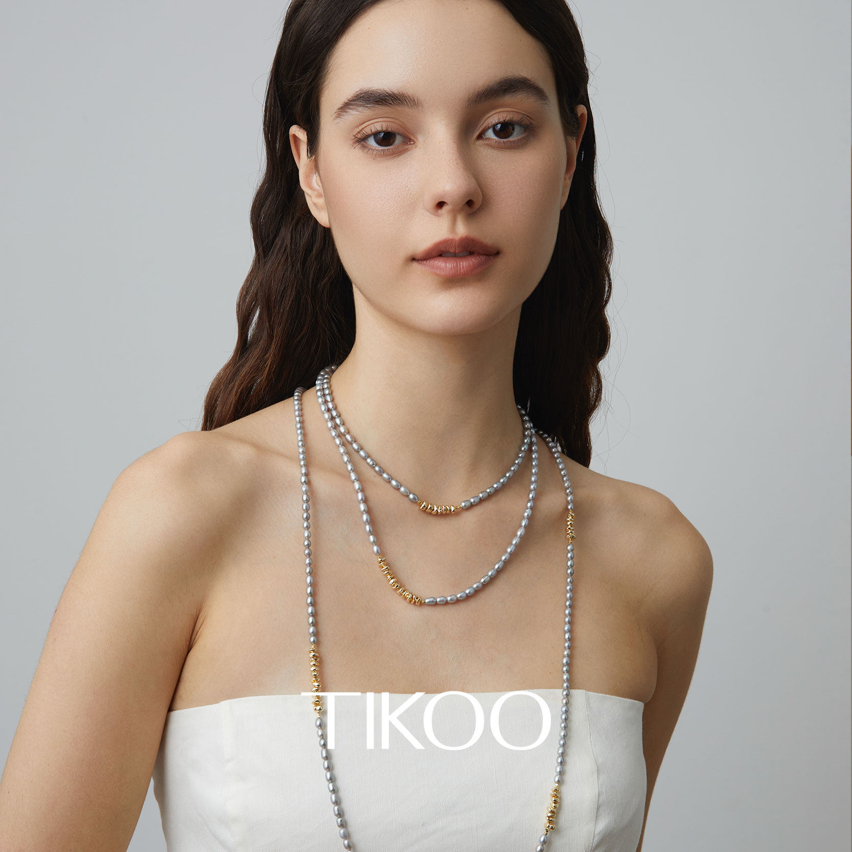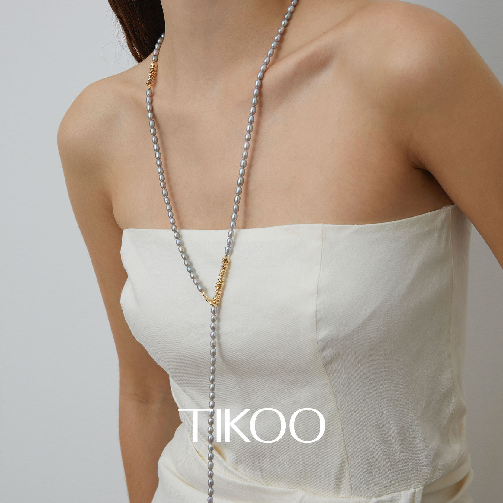 TIKOO灰色珍珠项链女秋冬配饰轻奢高级感小众新款爆款毛衣长颈链
