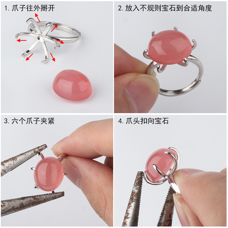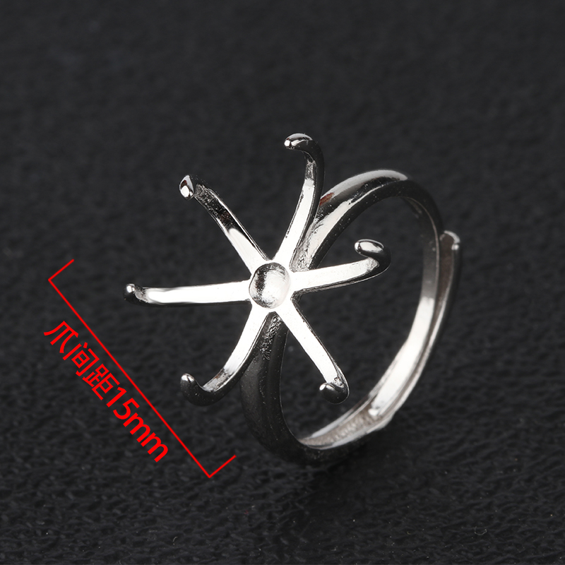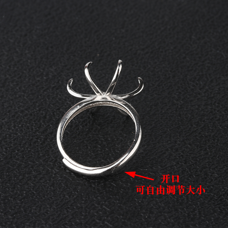 S925纯银六爪戒指空托配件镶嵌蛋面戒指托DIY开口可调指环介指环
