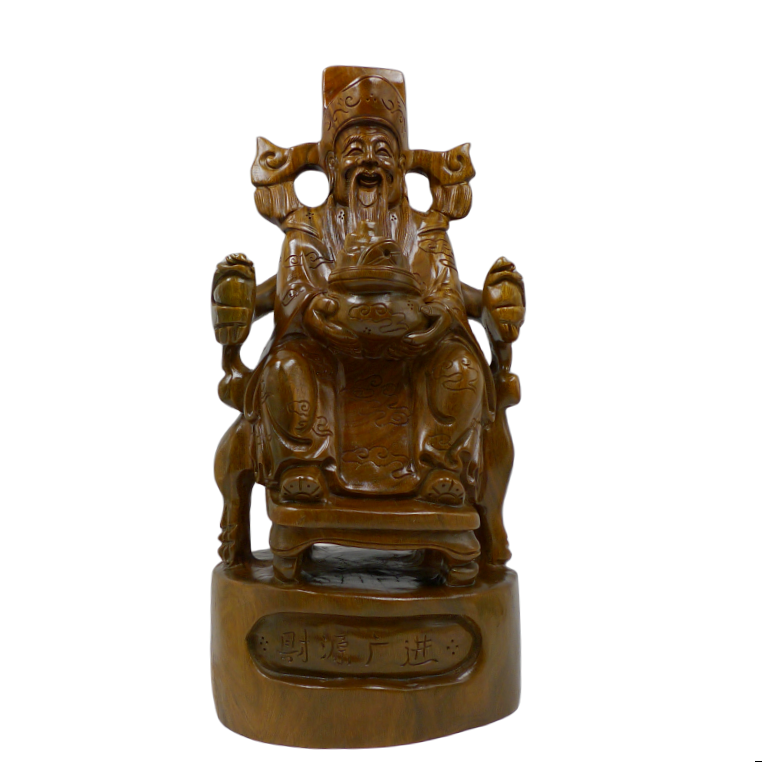 绿檀木雕文财神佛像摆件财神爷玄关客厅店铺开业家居装饰商务礼品