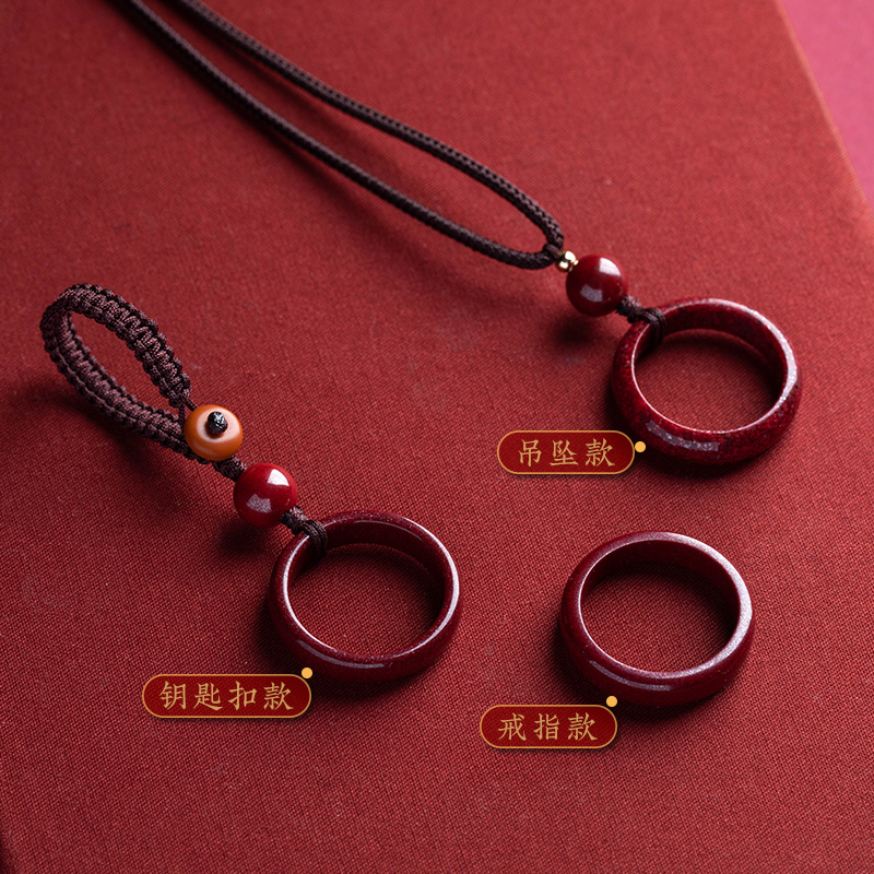 福一方官方旗舰店原矿朱砂素圈戒指女本命年指环男吊坠钥匙扣挂件