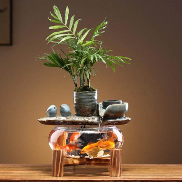 自循环流水喷泉鱼缸造景小摆件办公室桌面家居客厅装饰开业礼