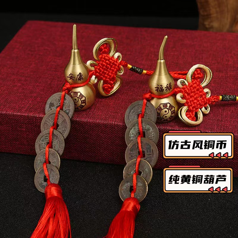 门对门纯铜葫芦仿古五帝钱乔迁搬家福禄安康招财进宝大门卧室挂件